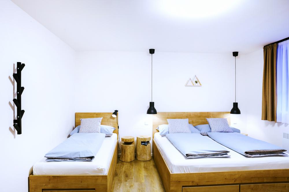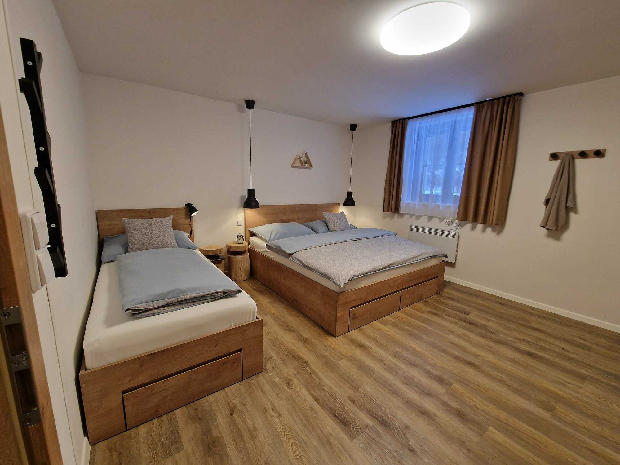 - Typy postelí: 2x Samostatná postel, 1x Velká manželská postel