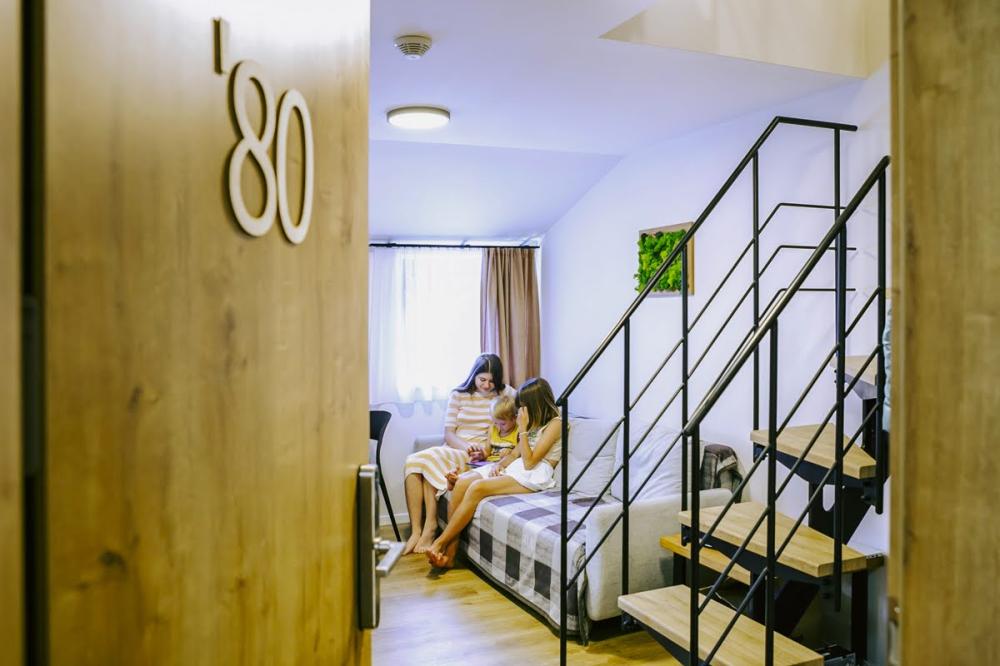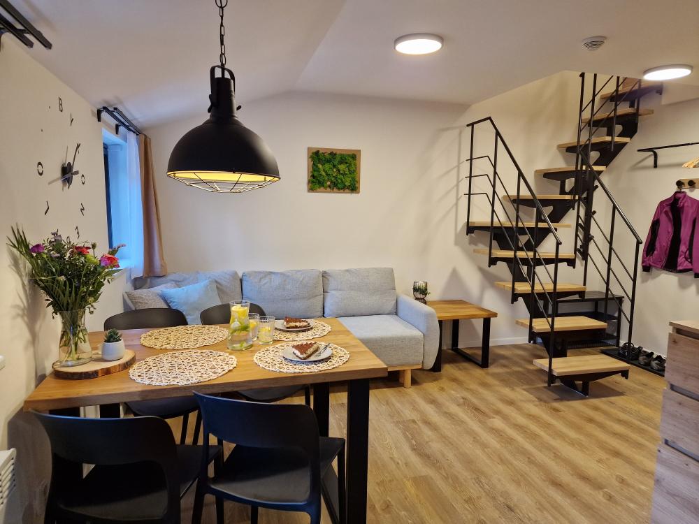 Moderní mezonetový apartmán v 2. patře domu je ideální pro ubytování skupin přátel nebo pro rodiny s odrostlejšími dětmi. Ložnice se 4 postelemi se nachází v patře a dostanete se do ní po vnitřním schodišti, které by menším dětem mohlo dělat problémy. V ceně pobytu je privátní sauna a dětská herna.